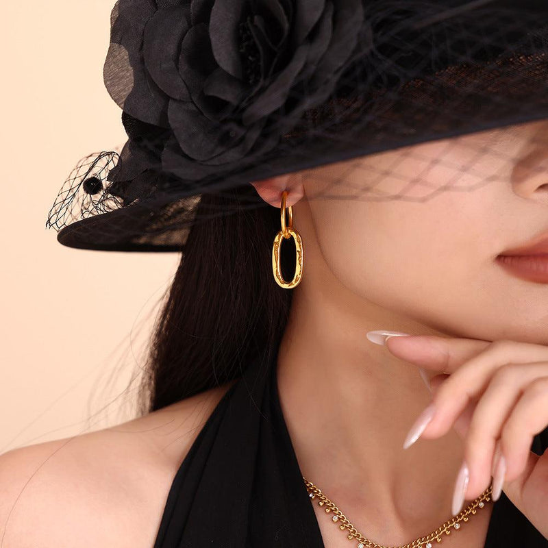 B廠-熱銷款幾何環扣耳圈復古不對稱設計歐美ins風鈦鋼耳飾品批發「F1618」24.09-3