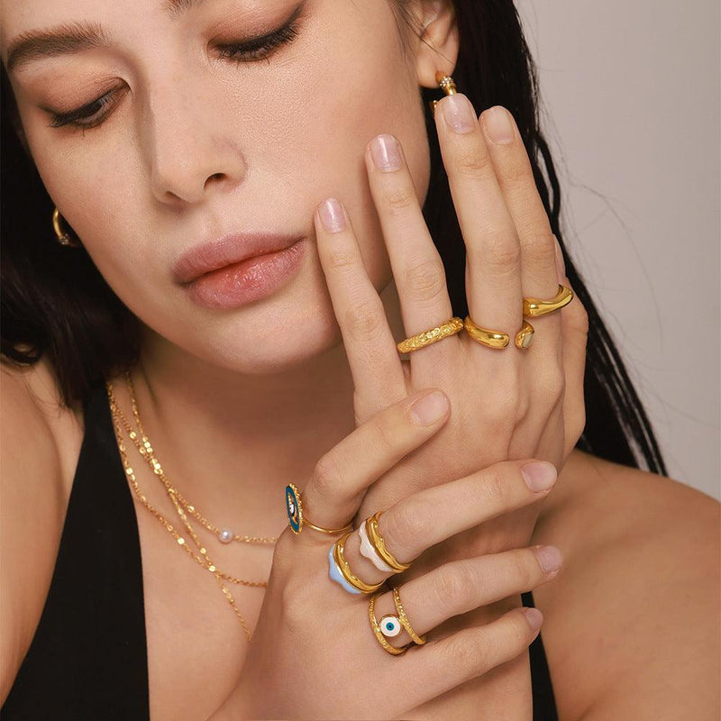 B廠-環形琺瑯彩釉不規則歐美指環小眾創意鈦鋼18K真金戒指首飾「A114」25.03-2