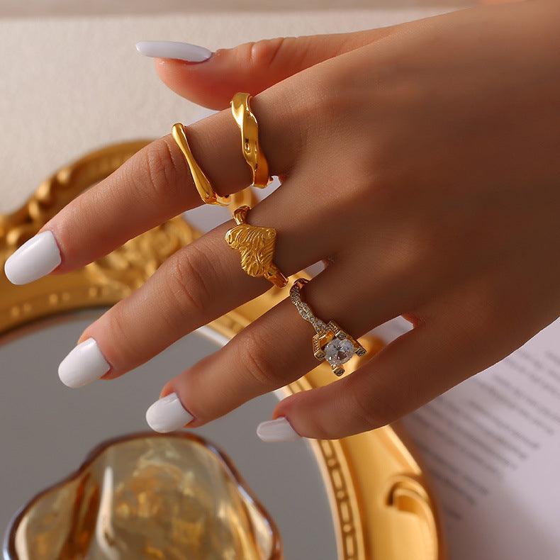B廠-法式復古百搭設計感幾何鑲嵌鋯石戒指鈦鋼鍍18k金指環保色飾品女「A829-32」24.05-4