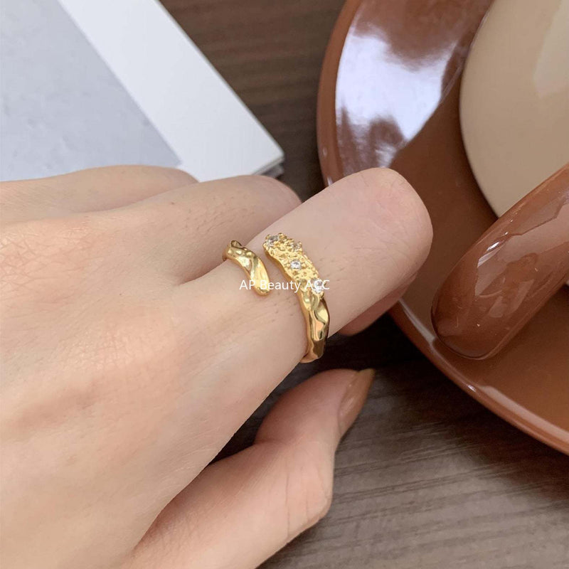 F廠-法式風925純銀鑲鑽不規則戒指 極簡時尚女設計感ins網紅戒「J1269」25.12-2
