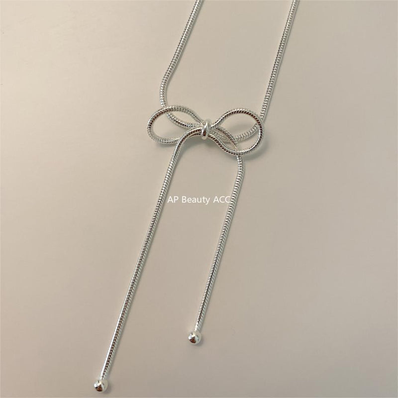 F廠-韓國韓版925純銀蝴蝶結蛇骨項鍊簡約ins網紅小紅書項鍊「B1190」25.12-2