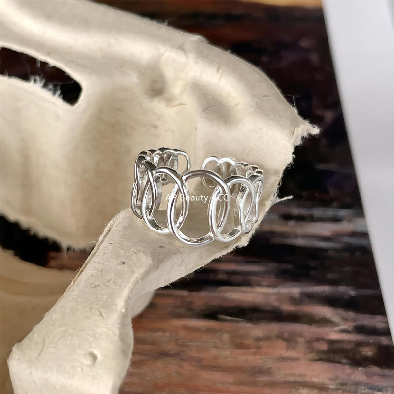 F廠-韓版飾品925純銀幾何鏤空橢圓戒指簡約小紅書INS時尚戒指「J1899」25.12-2