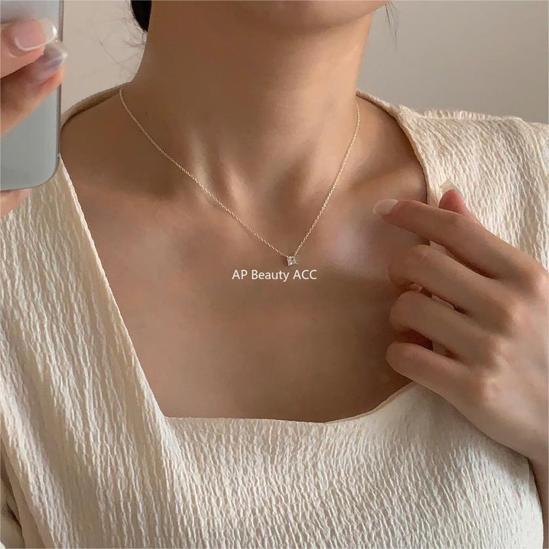 F廠-韓國韓版925純銀四爪方鋯項鍊簡約ins網紅抖音小紅書項鍊「B1197」25.12-2