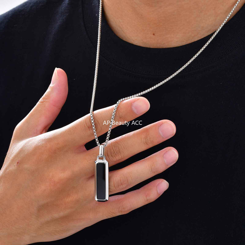 G廠-歐美跨境男士不鏽鋼吊墜長條虎眼石幾何百搭時尚簡約項鍊「PN-2226」25.11-2
