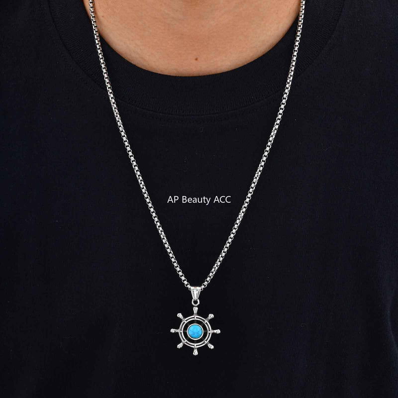 G廠-不鏽鋼復古項飾品船舵水手掛墜海軍潮牌船舵綠松石吊墜「PN-2234」25.11-2