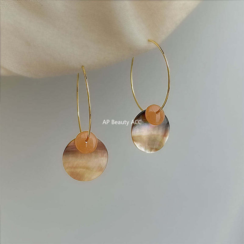 A廠-真貝殼時尚高級感手工藝新款圓形幾何度假風耳飾工廠新款耳環飾品「6943」25.10-5