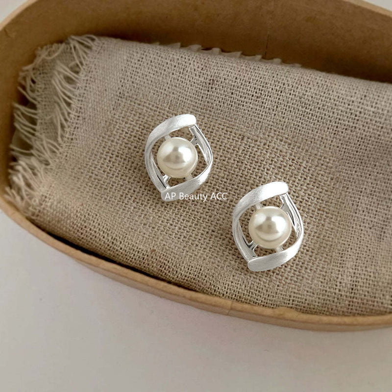 A廠-拉絲款冷淡風925銀針幾何扭曲立體銀針新款珍珠耳飾工廠耳環 飾品「6980」25.10-5