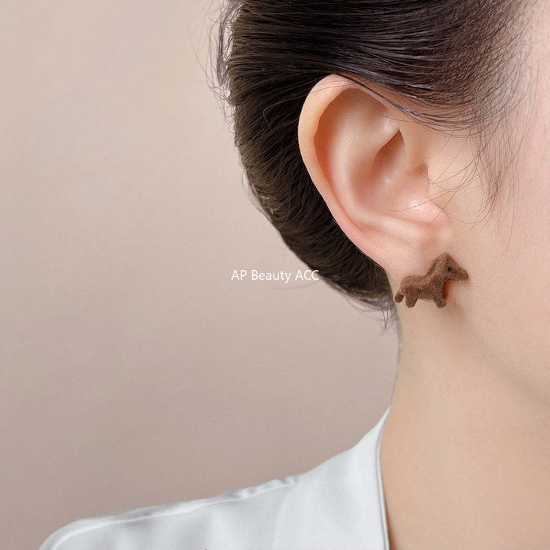 A廠-可愛植絨小馬個性趣味新款熱賣ins設計925銀針耳環馬年耳飾女「6995」25.10-5