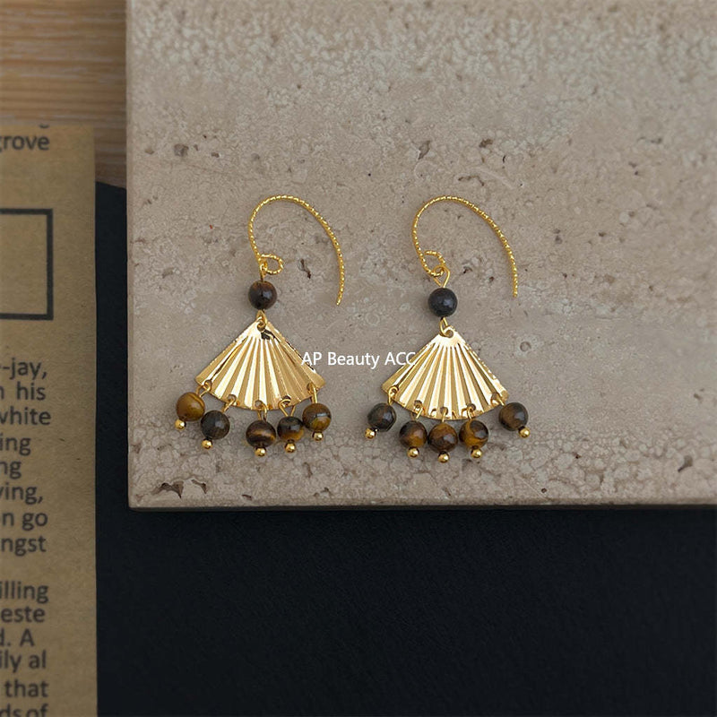 A廠-美拉德風虎眼石天然石手工設計感扇形流蘇咖色秋冬新款耳飾耳環「7020」25.11-1
