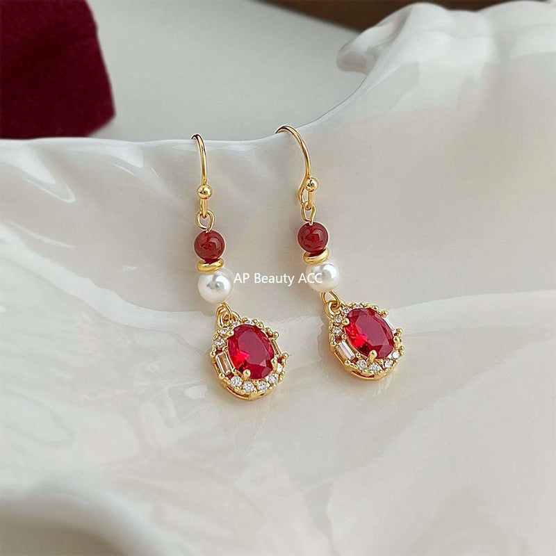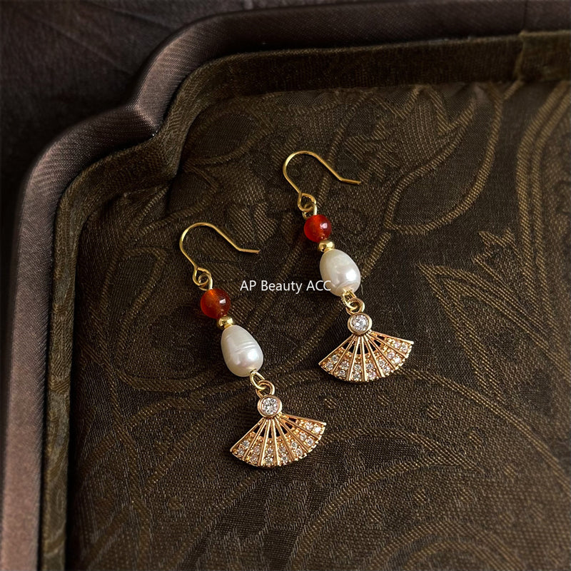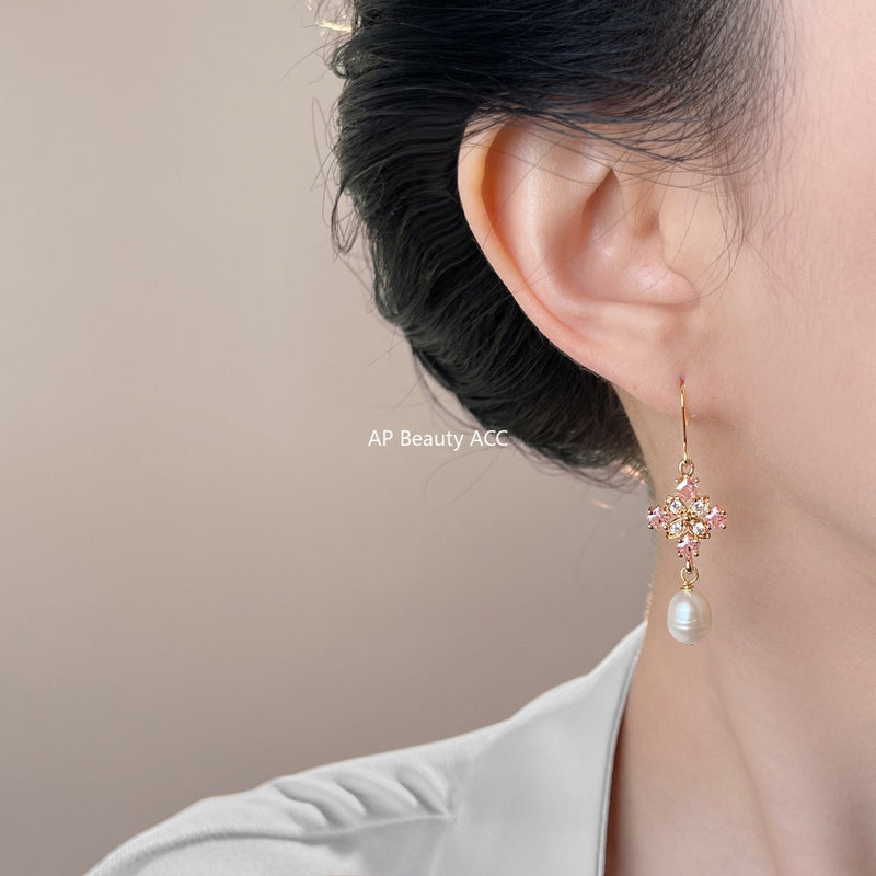 A廠-淡水珍珠新中式宮廷風手工藝設計感微鑲鋯石工廠耳飾新款耳環女「7025」25.11-1