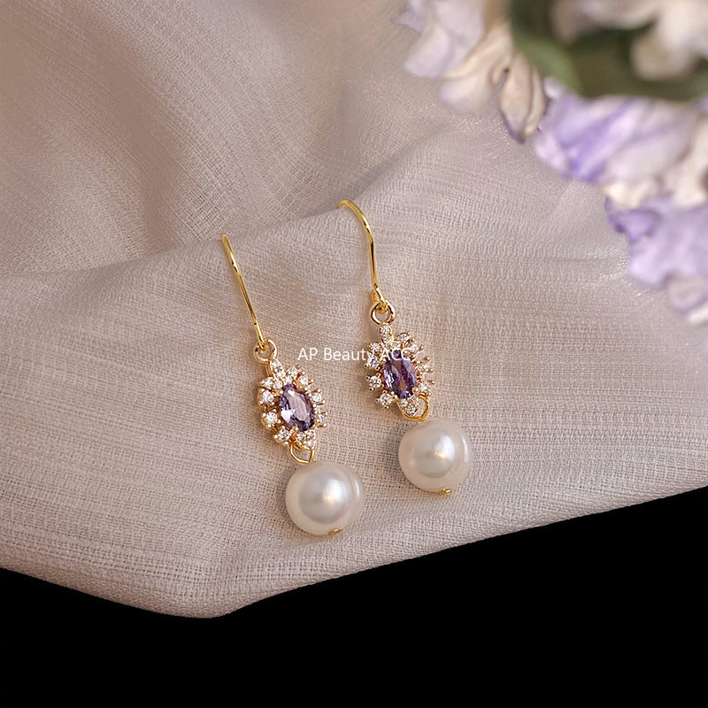 A廠-鑲嵌鋯石天然石薰衣草紫水晶手工耳環氣質國潮新中式耳飾工廠貨源批發「7019」25.11-1