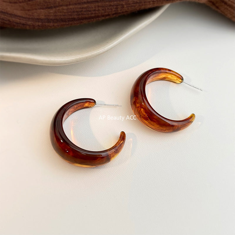 A廠-秋冬爆款文藝復古美拉德風暈染色琥珀咖色幾何誇張圓形耳飾耳環「7029」25.11-1