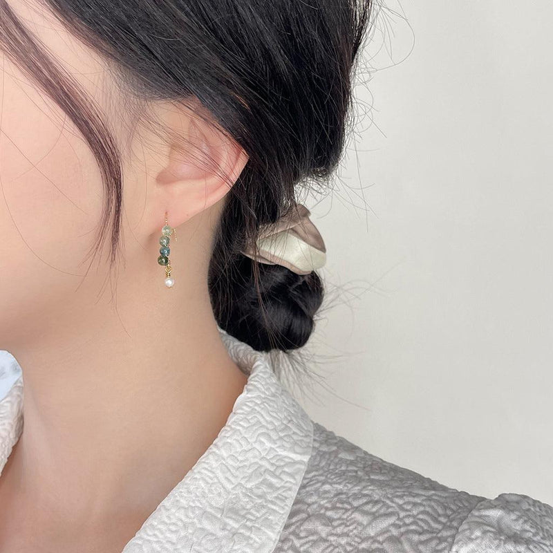 A廠-天然石綠水草森系小清新原廠設計感耳飾女鍍14K極簡耳環工廠「3909」24.05-1