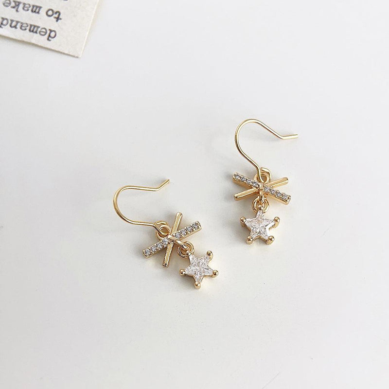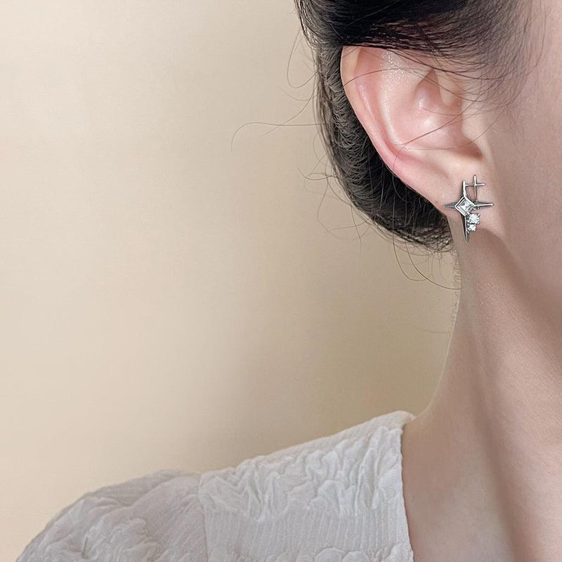 A廠-個性甜酷風微鑲鋯石芒星耳環 ins小眾設計師網紅新耳飾工廠飾品「4817」24.09-1