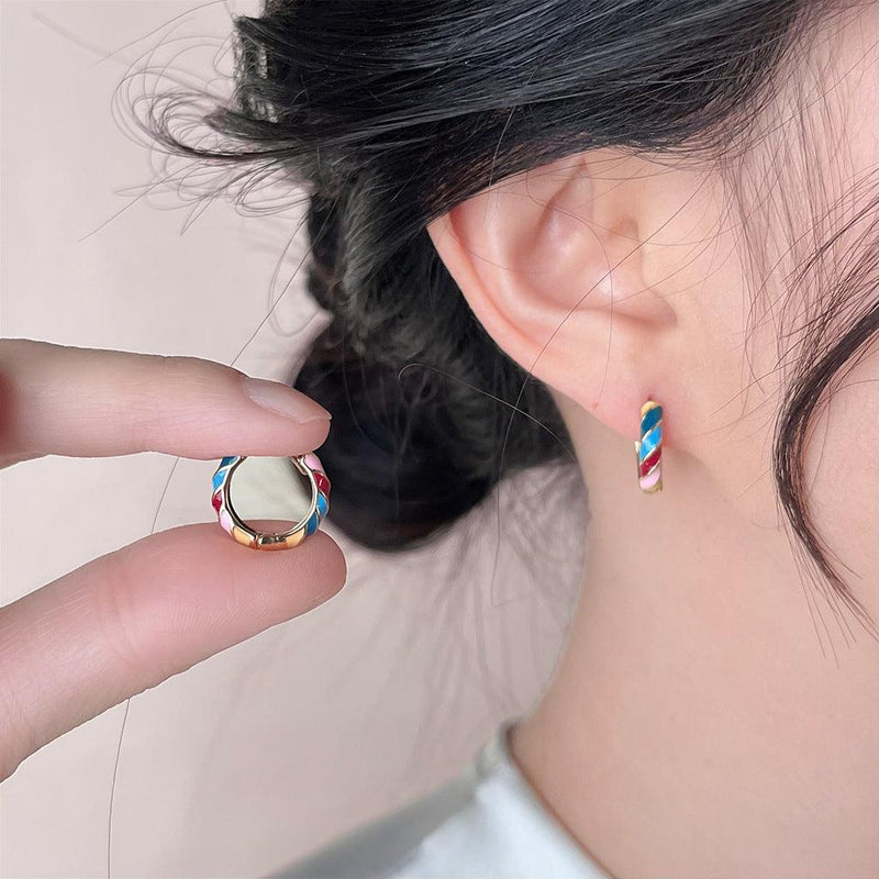 A廠-夏日小清新七彩滴油圓形幾何甜美耳扣女氣質簡約通勤日常佩戴耳飾「4188」24.05-5