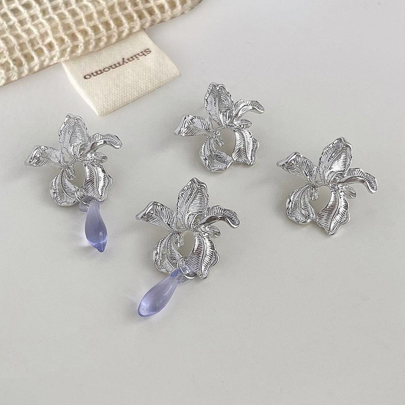 A廠-【鳶尾花】設計師款實物略大美人氣質優雅高級感時尚銀針耳飾耳環「4118-4119」24.05-5