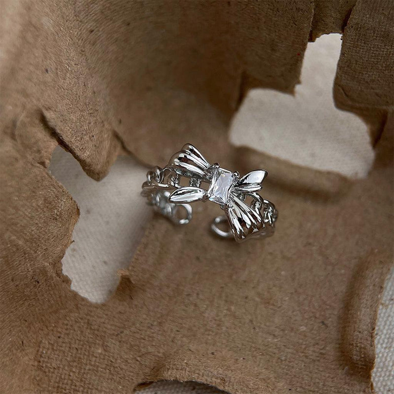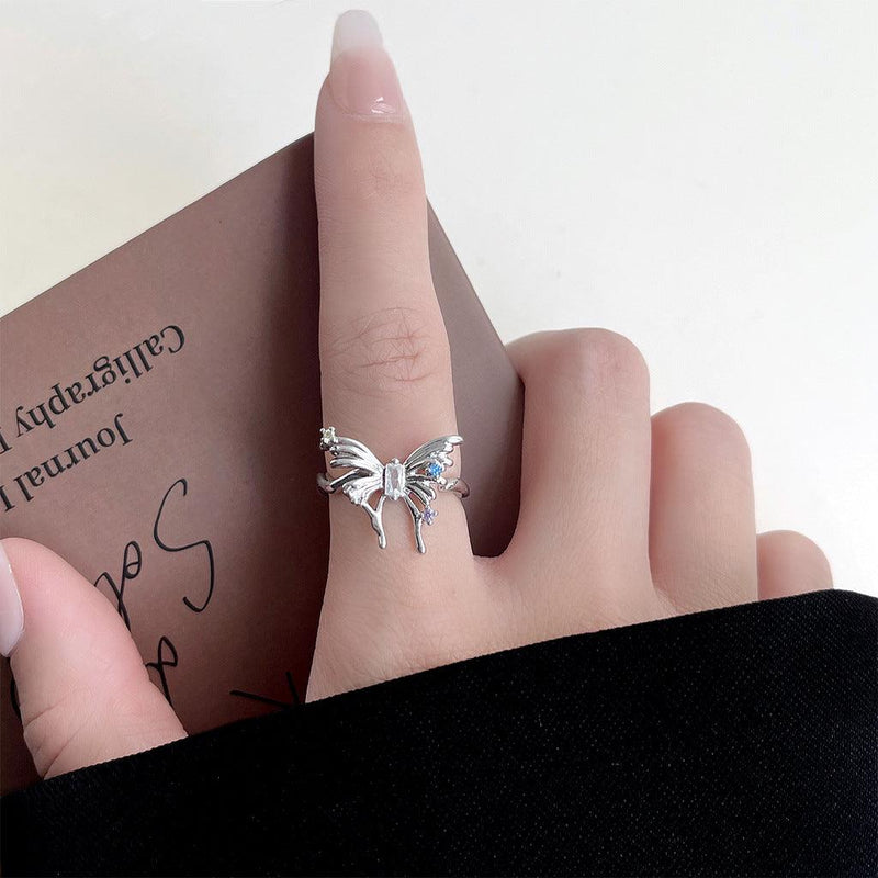 A廠-個性甜酷風鑲嵌鋯石液態蝴蝶戒指ins小眾設計開口可調節指環飾品「4072」24.05-4
