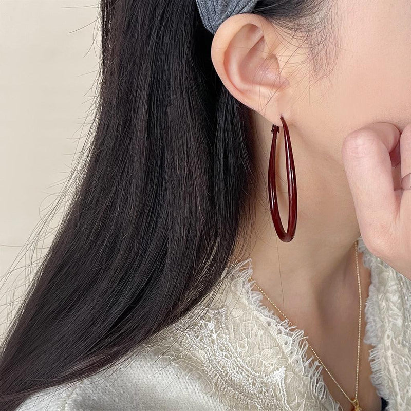 A廠-安可拉紅烤漆質感港風時尚通勤百搭新款高級感水滴幾何耳飾耳環女「5071-5072」24.11-1