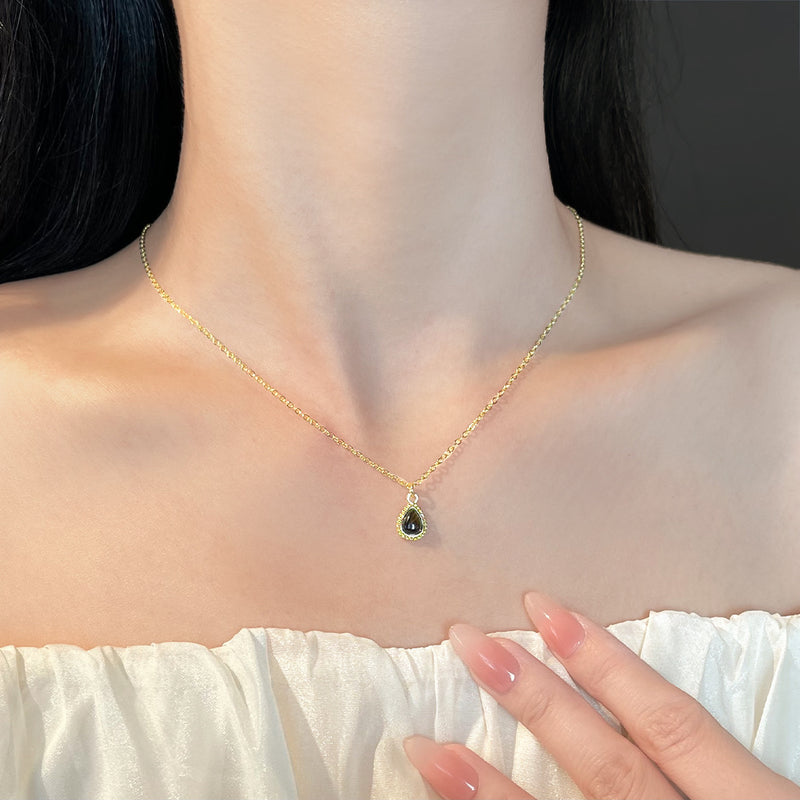 A廠-厚鍍18K真金強保色不易褪色天然石虎眼石水滴項鍊 中古風鎖骨鍊女「6626」25.08-4