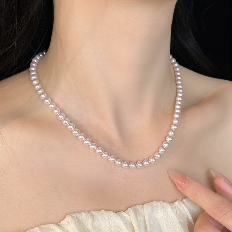 A廠-曼塔玫瑰色玻璃高品質珍珠項鍊爆款新款甜美通勤百搭鍍真金項鍊女「6710-6713」25.09-1