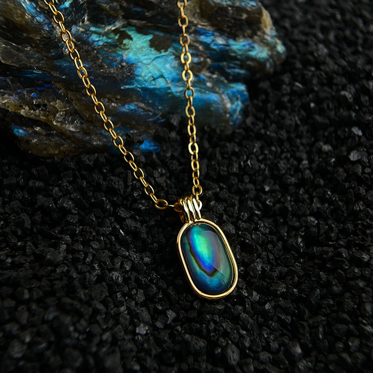 A廠-鮑魚貝厚鍍真金強保色鎖骨鏈幾何長方時尚高級感氣質項鍊工廠飾品「6613」25.08-4