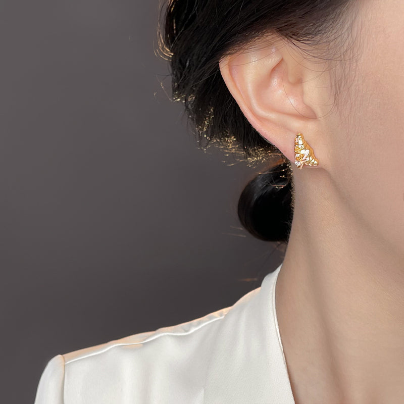 A廠-設計師款 925銀針鍍14K牛角包創意個性小香風蝴蝶結耳環工廠耳飾「6585」25.08-4