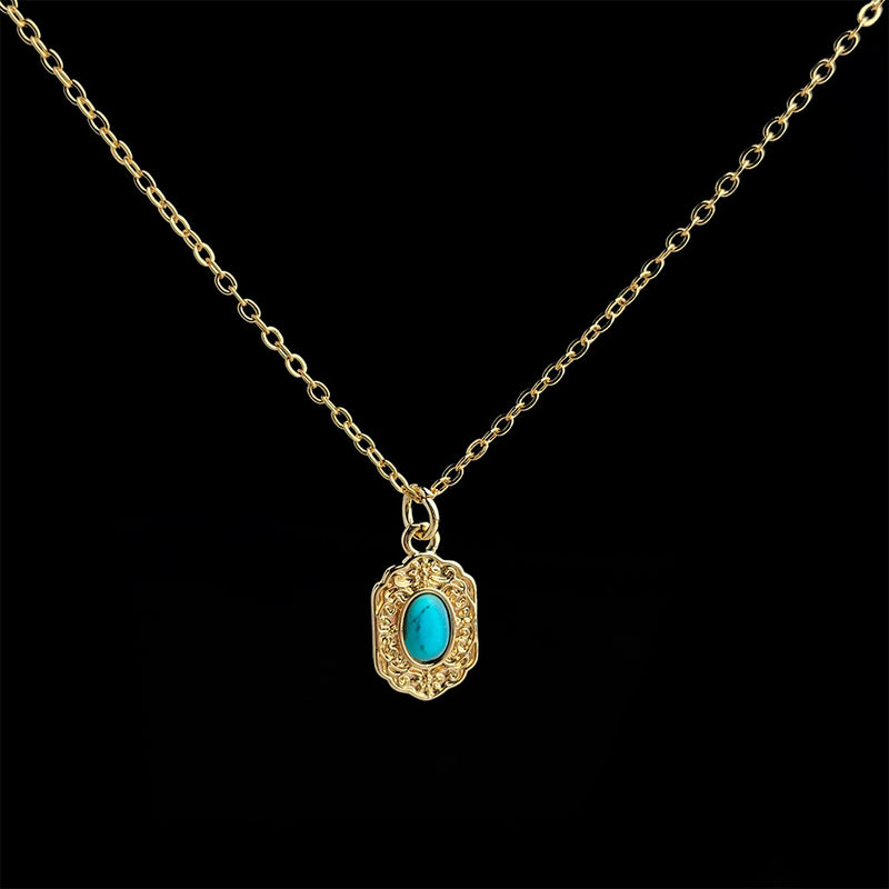 A廠-厚鍍18K真金強保色合成鬆石幾何文藝復古簡約通勤項鍊工廠 鎖骨鏈「6611」25.08-5