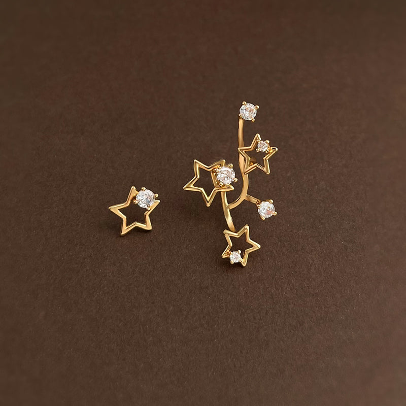 A廠-【繁星】原創設計不對稱個性微鑲鋯石ins創意新耳環女 星系耳飾「6673」25.08-5