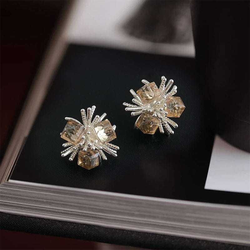 A廠-時尚高級感玻璃水晶咖色系秋冬新款幾何冰花 爆款925銀針耳釘「6734」25.09-2