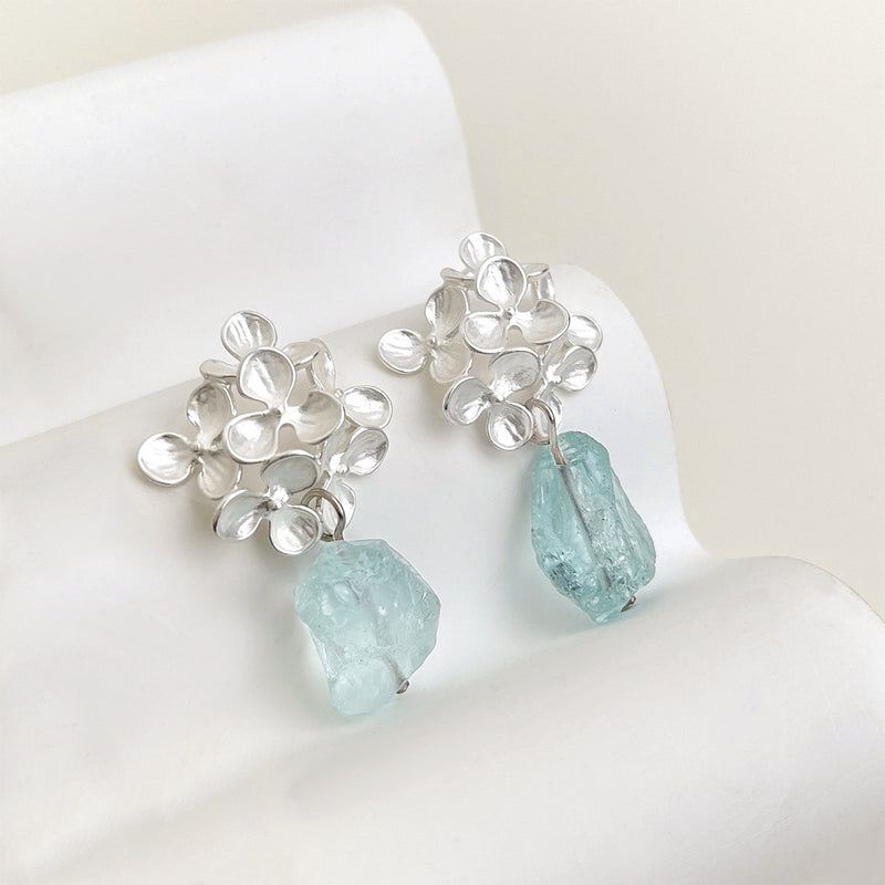 A廠-夏日新款清新甜美天然石藍水晶花朵耳環度假風寫真耳飾「6014」25.05-2