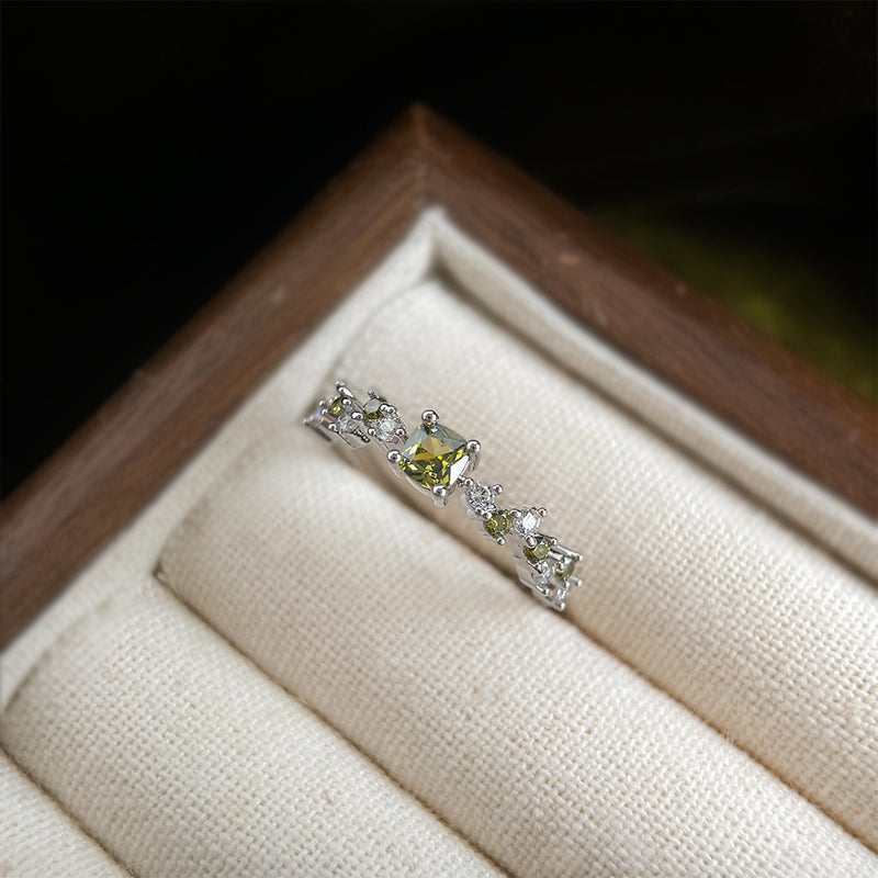 A廠-法式復古橄欖綠鋯石開口可調鍍真金保色戒指新款食指戒「6461」25.07-3