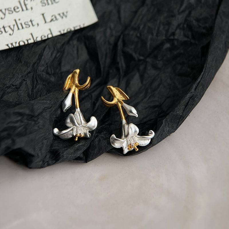 A廠-噴砂質感 雙色電鍍925銀針雙拼色花朵清新甜美耳飾工廠耳環飾品「6266」25.06-3