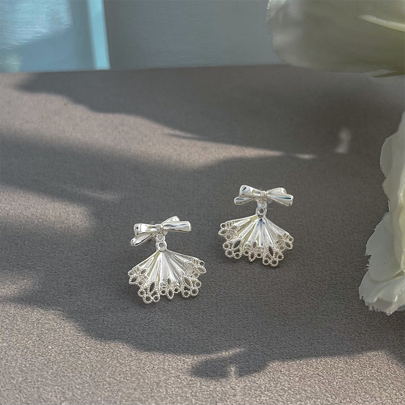 A廠-芭蕾少女 一款兩戴銀色蝴蝶結耳環耳環甜美風輕奢韓系925銀針耳飾「6152」25.05-5