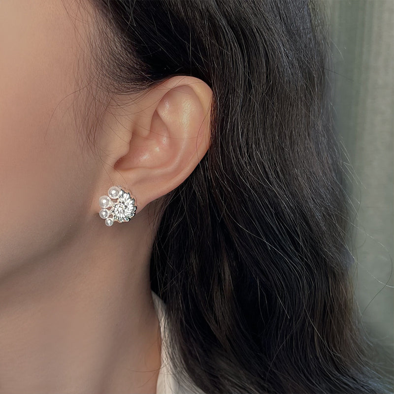 A廠-法式復古真貝殼微鑲鋯石鍍14K時尚高級感925銀針新款耳飾工廠耳環「6373」25.07-1