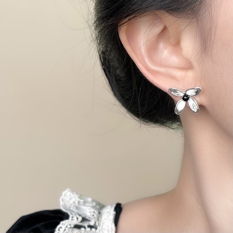 A廠-氣質優雅設計師款925銀針四葉小花銀針高級感耳飾工廠耳環女 飾品「6046」25.05-3