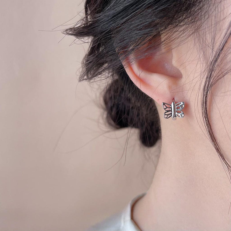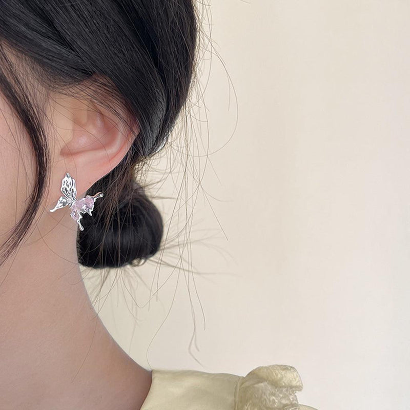 A廠-個性ins液態鋯石蝴蝶小眾設計師銀針耳飾女甜酷風耳環新款小飾品「3984」24.05-1