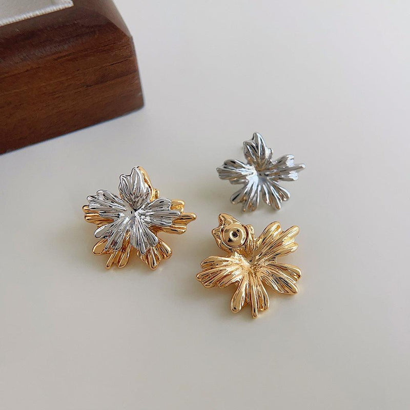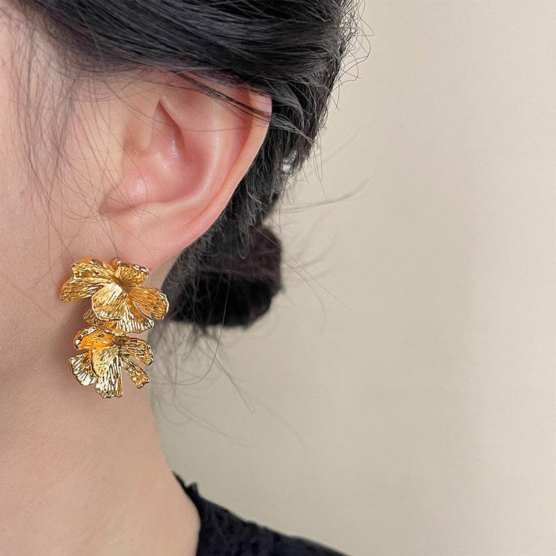 A廠-中古重工質感鍍14K一款兩戴立體花朵耳環女氣質工廠新款耳環飾品「4333」24.06-3