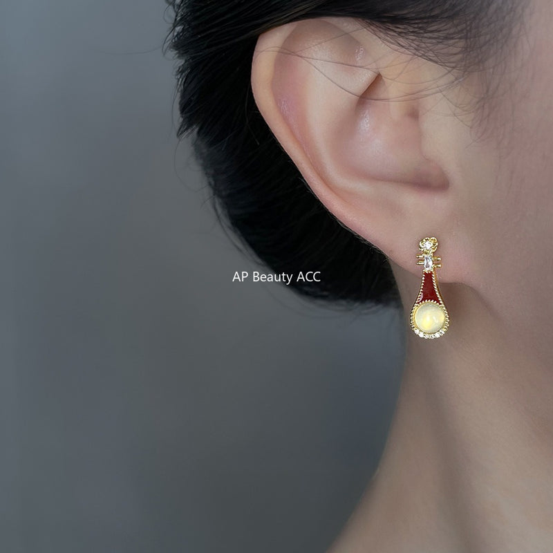 A廠-原創琵琶~瑪瑙文藝氣質微鑲鋯石925銀針琺瑯滴釉酒紅色耳釘耳飾女「6836」25.10-3