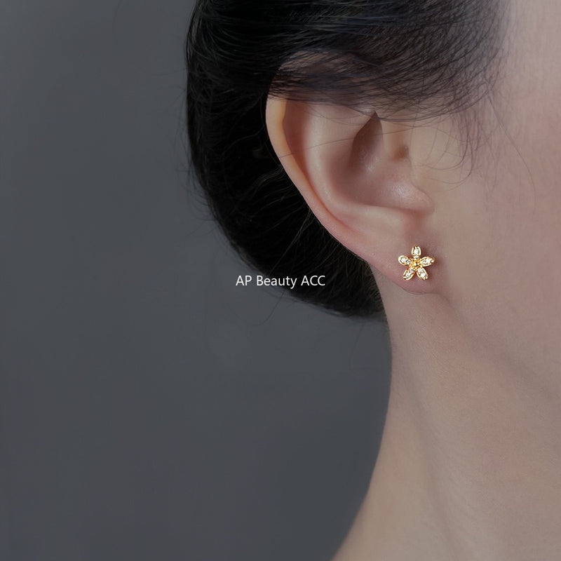 A廠-微鑲鋯石迷你版925銀針小花耳環 清新甜美簡約通勤百搭新款耳飾「6928」25.10-3