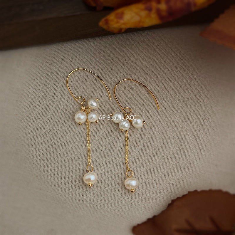A廠-淡水珍珠輕奢風時尚高級感長款流蘇手工耳環氣質新款工廠耳飾批發「6499」25.10-3