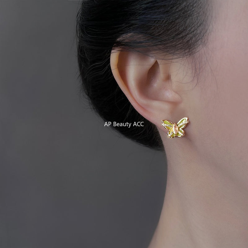 A廠-原創設計微鑲鋯石925銀針琺瑯滴釉森系蝴蝶耳飾 清新甜美耳釘「6923」25.10-3