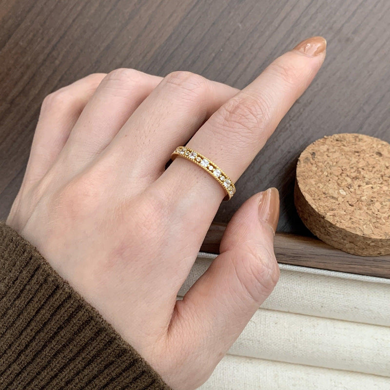 F廠-韓國韓版 925純銀指環金色戒簡約百搭鋯石網紅小眾戒指「J1016」24.12-2