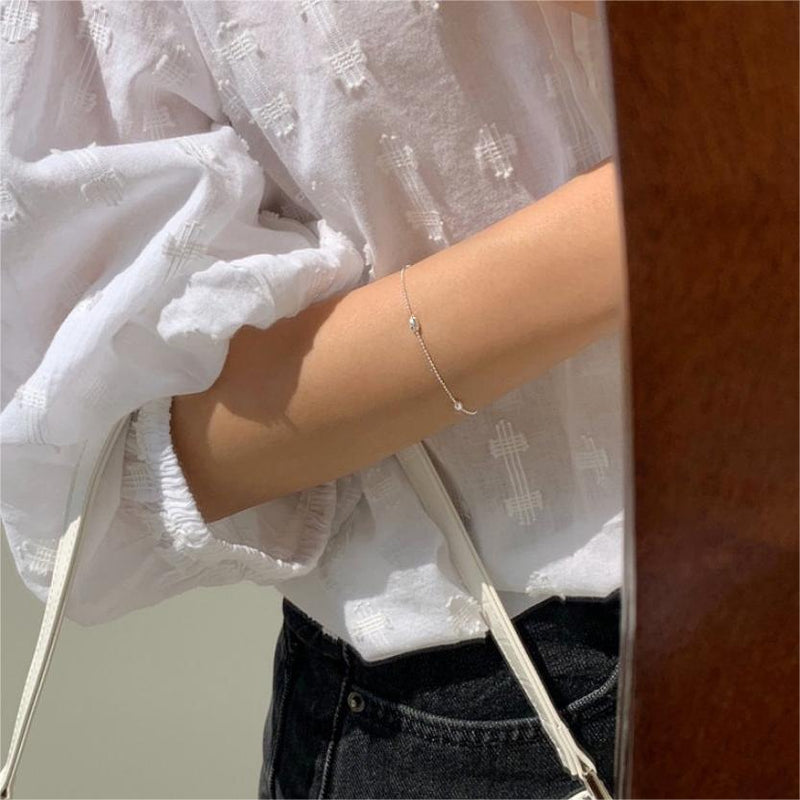F廠-韓國韓版 S925純銀圓珠手鍊簡約幾何形細線條手鍊手飾「A328」25.04-4