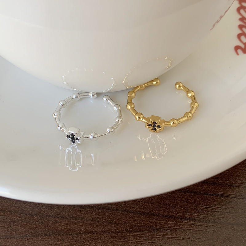 F廠-韓國韓版 925純銀黑鑽十字架戒金色戒簡約百搭INS網紅小眾戒指「J943」25.08-1