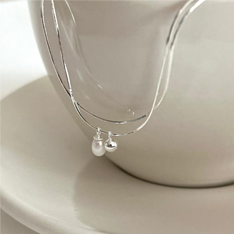 F廠-韓國韓版 S925純銀珍珠雙線蛇骨手鍊簡約幾何線條手鍊手飾「A330」25.08-5