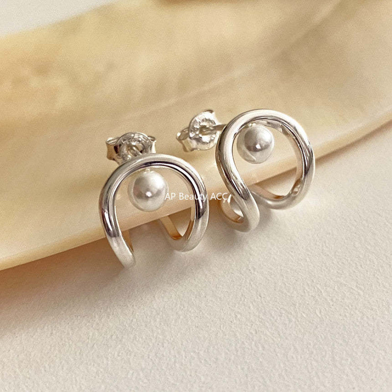 F廠-韓國韓版925純銀U形自然圓弧耳環耳圈通體純銀耳釘「C1065」25.09-4