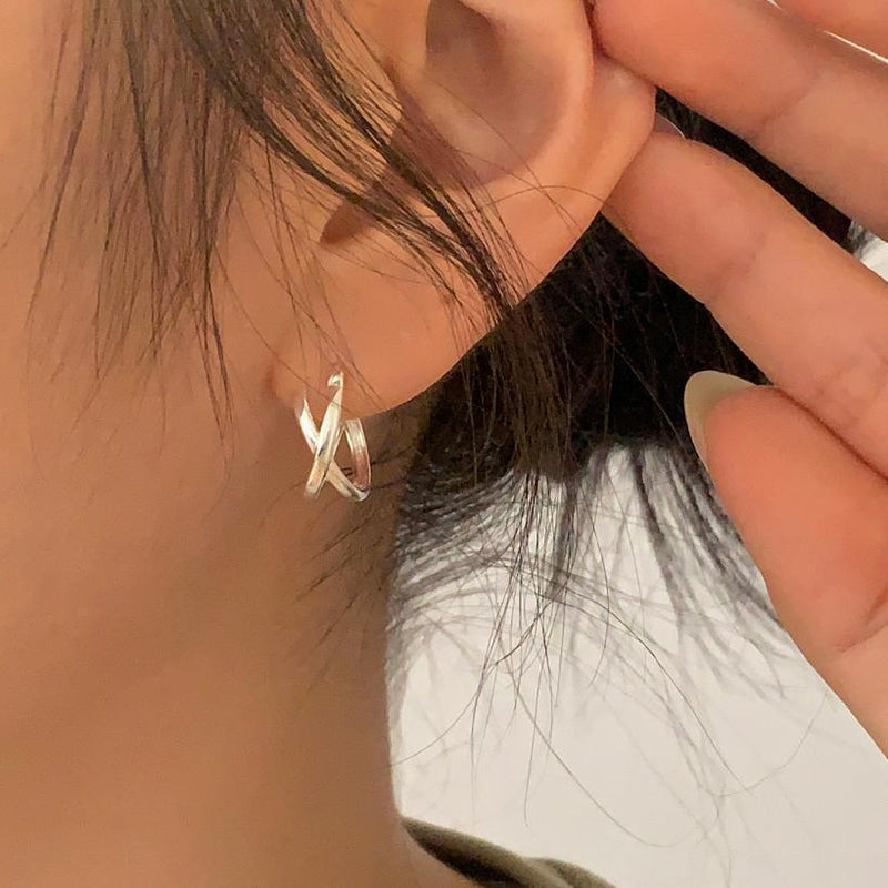 F廠-韓國韓版925純銀交叉線條重工耳扣耳環女簡約時尚ins風耳「C1271」24.01-4