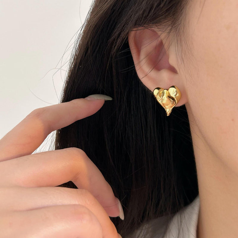 F廠-韓國韓版925純銀不規則愛心耳釘簡約氣質百搭ins風耳飾「C1343」24.08-1