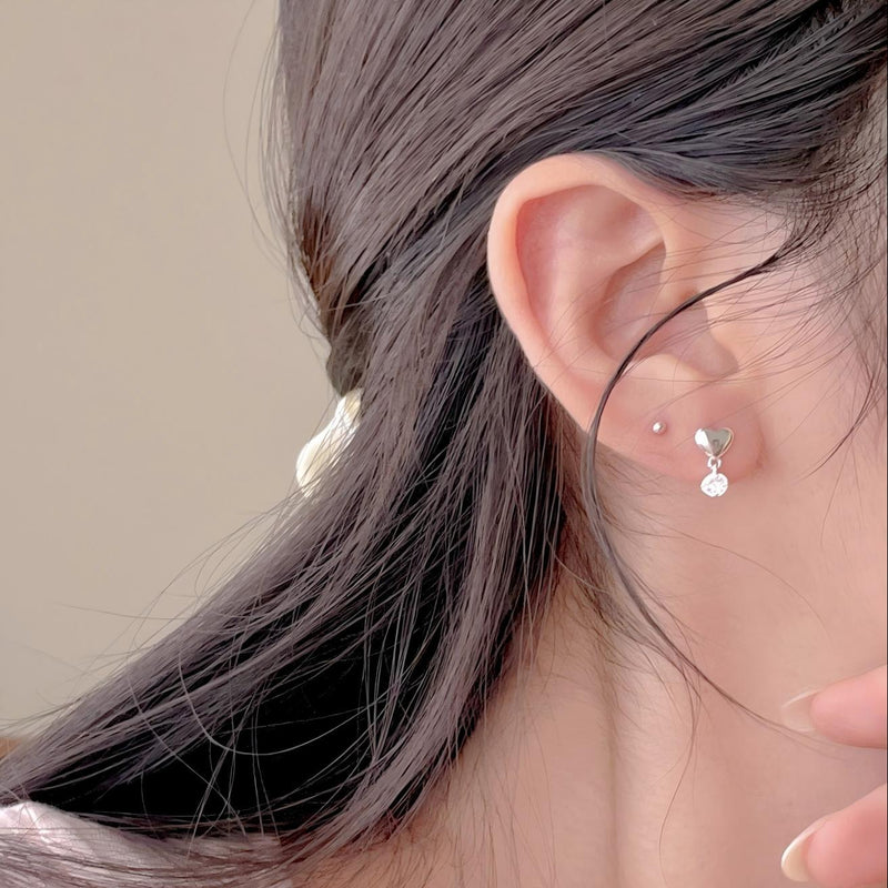 F廠-韓國韓版925純銀愛心鋯石耳釘簡約冷淡風氣質ins風耳飾「C1229」25.08-2