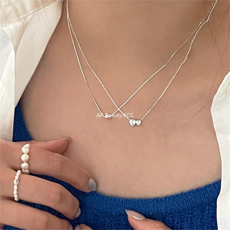 F廠-韓國韓版925純銀愛心鋯石項鍊簡約氣質ins百搭小紅書項鍊「B1357」25.05-1